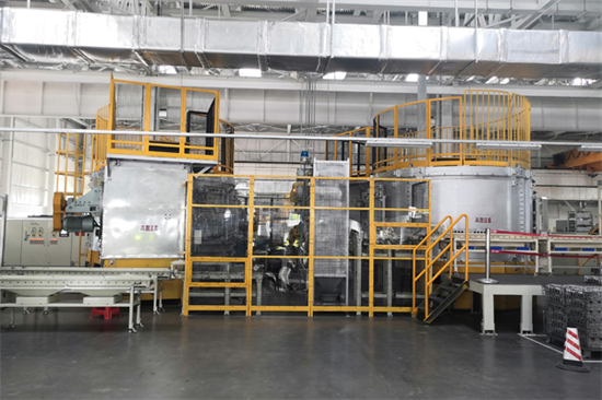 將工件堆放在爐架上,基于機(jī)械手自動(dòng)搬入、搬出進(jìn)行連續(xù)熱處理的設(shè)備。